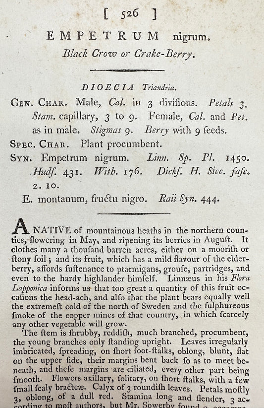 Antique Print - James Sowerby - Empetrum Nigrum - Black Crow or Crake-Berry - F1