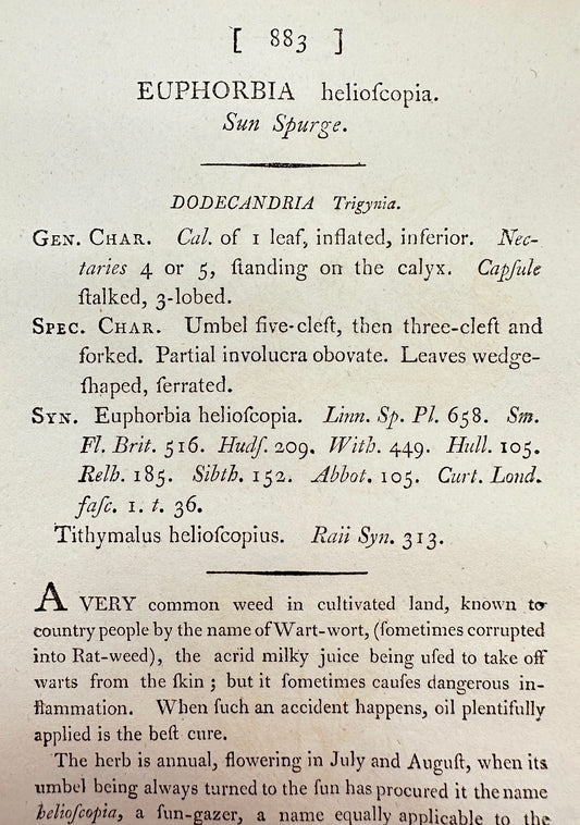 Antique Print - James Sowerby - Euphorbia Helioscopia - Sun Spurge - F1