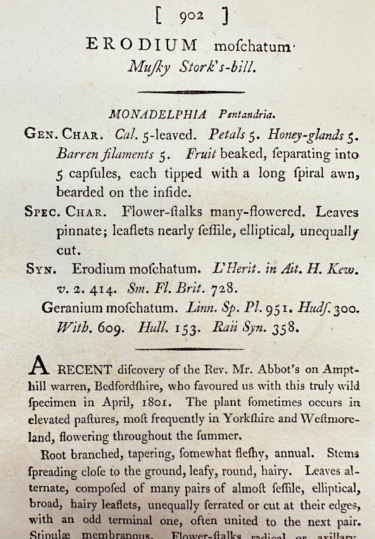 Antique Print - James Sowerby - Erodium Moschatum - Musky Stork's-bill - F1