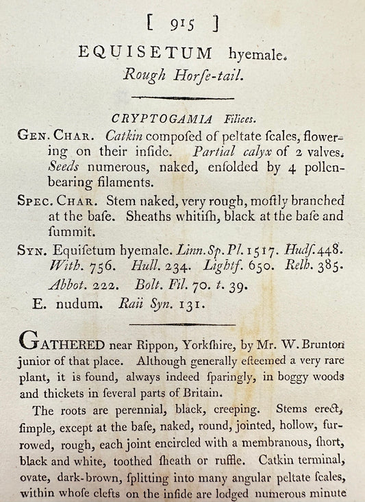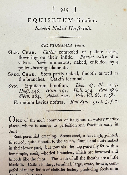 Antique Print - James Sowerby - Equisetum Hyemale - Rough Horsetail - F1