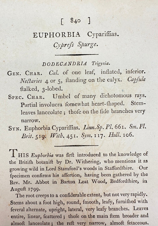 Antique Print - James Sowerby - Euphorbia Cyparissias - Cypress Spurge - F1