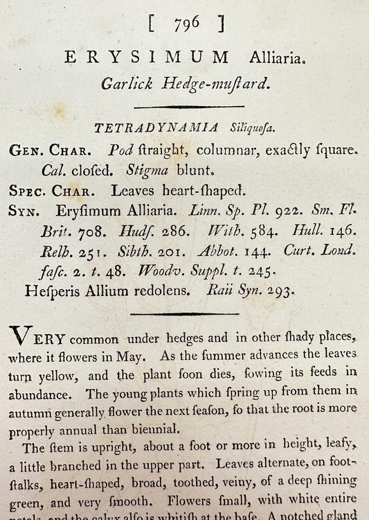 Antique Print - James Sowerby - Erysimum Alliaria - Garlick Hedge-mustard - F1