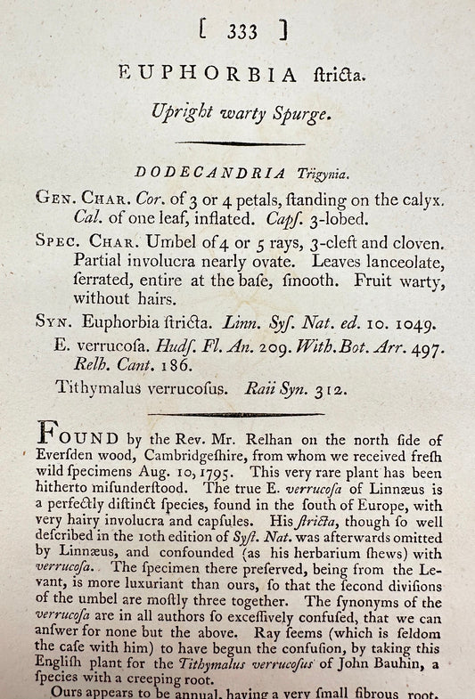 Antique Print - James Sowerby - Euphorbia Stricta - Upright warty Spurge - F1