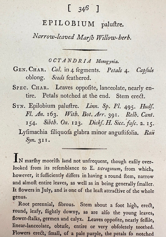 Antique Print - James Sowerby - Epilobium Palustre - Marsh Willowherb - F1