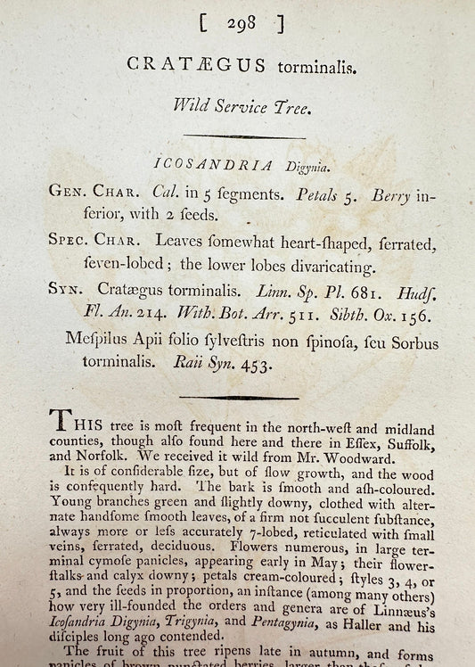 Antique Print - James Sowerby - Crataegus Torminalis - Wild Service Tree - F1