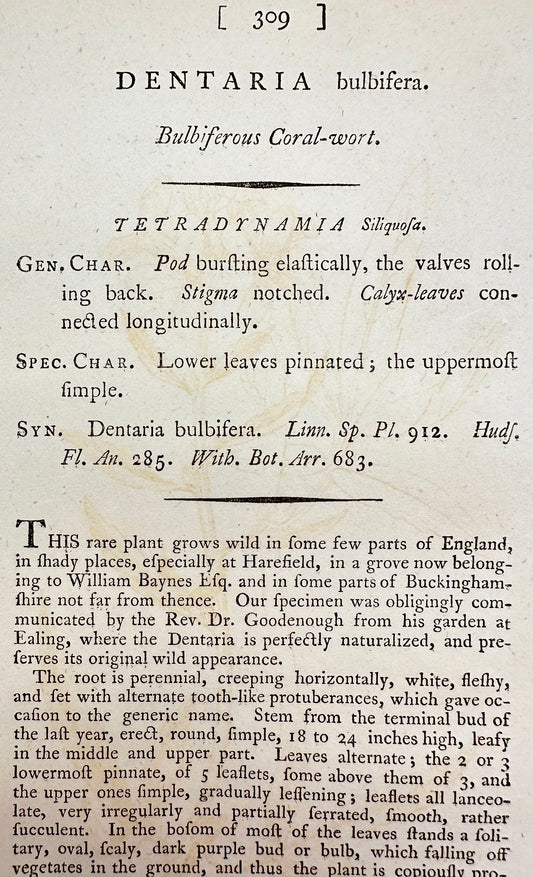 Antique Print - James Sowerby - Dentaria Bulbifera - Bulbiferous Coral-wort - F1