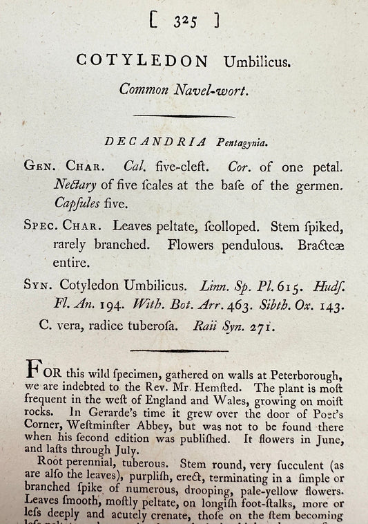 Antique Print - James Sowerby - Cotyledon Umbilicus - Common Navel-wort - F1