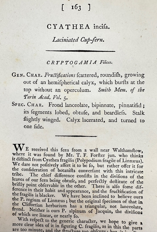 Antique Print - James Sowerby - Cyathea Incisa - Laciniated Cup-fern - F1