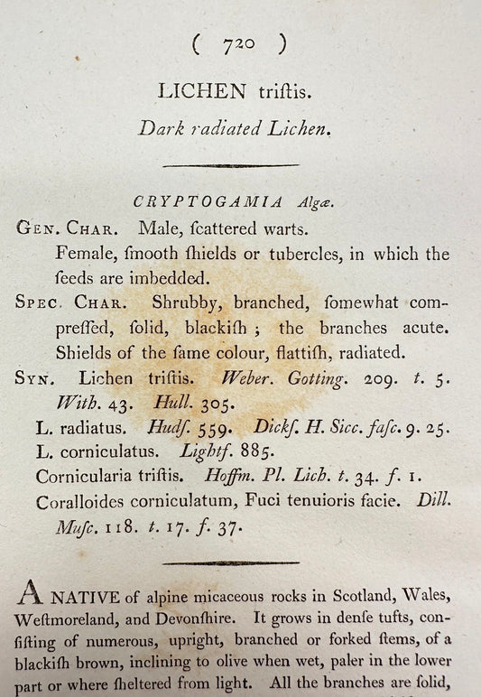 Antique Print - James Sowerby - Dark Radiated Lichen - Lichen Triftis - F1