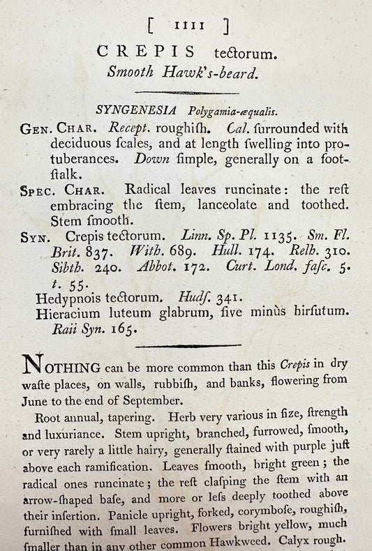 Antique Print - James Sowerby - Crepis Tectorum - Smooth Hawk's-beard - F1