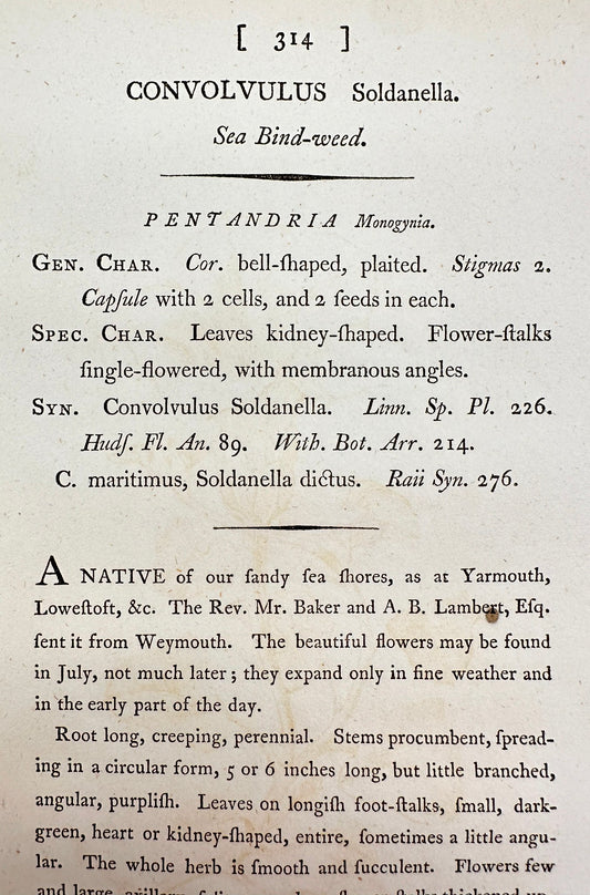 Antique Print - James Sowerby - Convolvulus Soldanella - Sea Bind-weed - F1