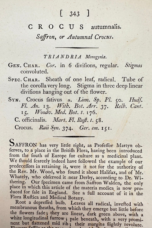 Antique Print - James Sowerby - Crocus Autumnalis - Autumnal Crocus - F1