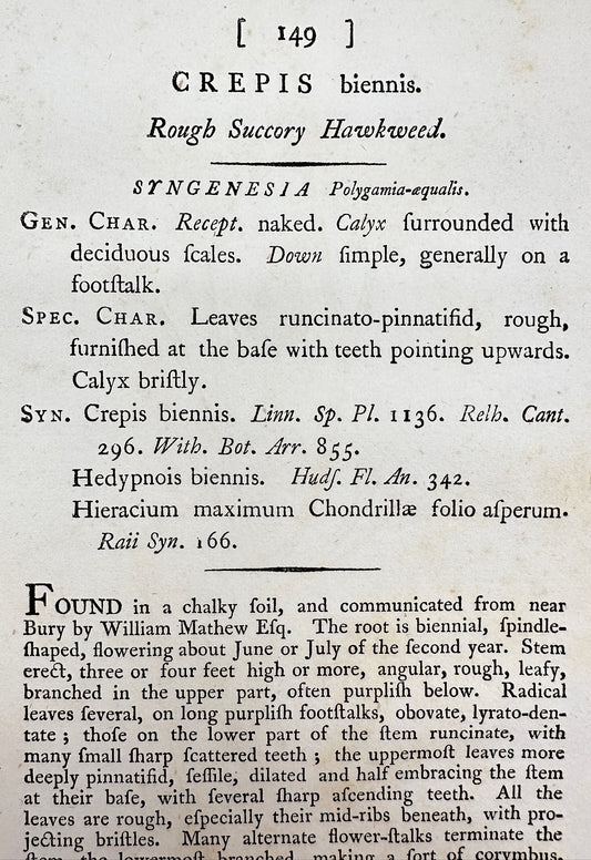 Antique Print - James Sowerby - Crepis Biennis - Rough Succory Hawkweed - F1