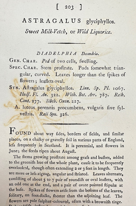 Antique Print - James Sowerby - Astragalus Glyciphyllos - Sweet Milk-Vetch - F1