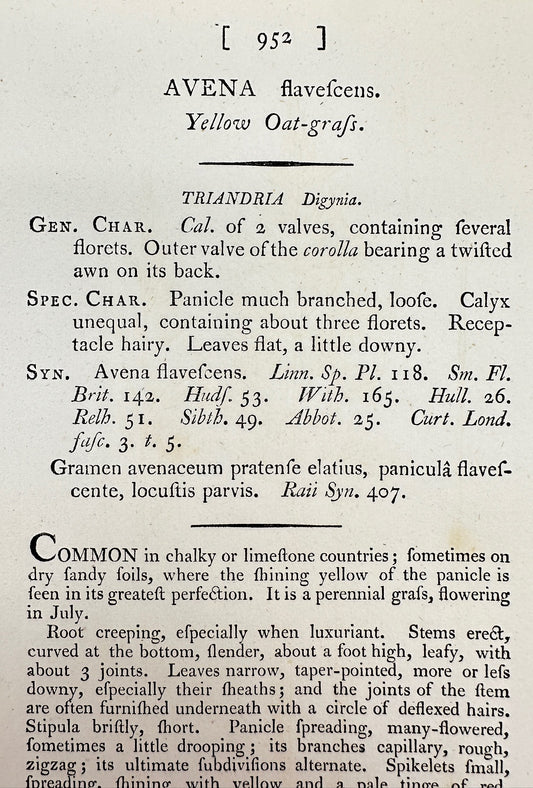 Antique Print - James Sowerby - Avena Flavefcens - Yellow Oat-grafs - F1