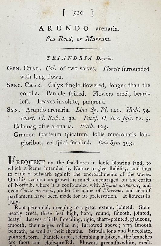 Antique Print - James Sowerby - Arundo Arenaria - Sea Reed, or Marram - F1