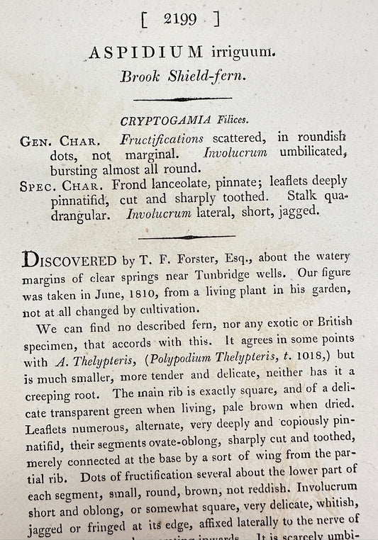 Antique Print - James Sowerby - Aspidium Irriguum - Brook Shield-fern - F1