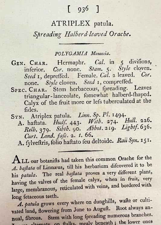 Antique Print - James Sowerby - Atriplex Patula - Spreading Orache - F1