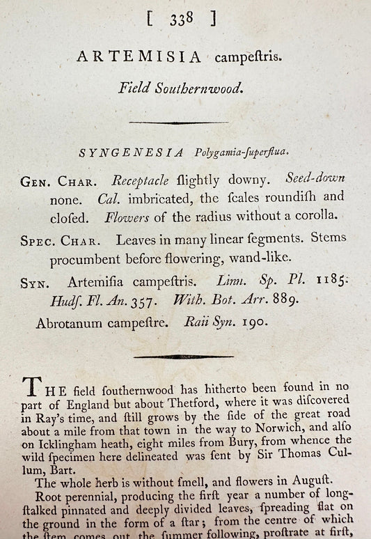 Antique Print - James Sowerby - Artemisia Campestris - Field Southernwood - F1