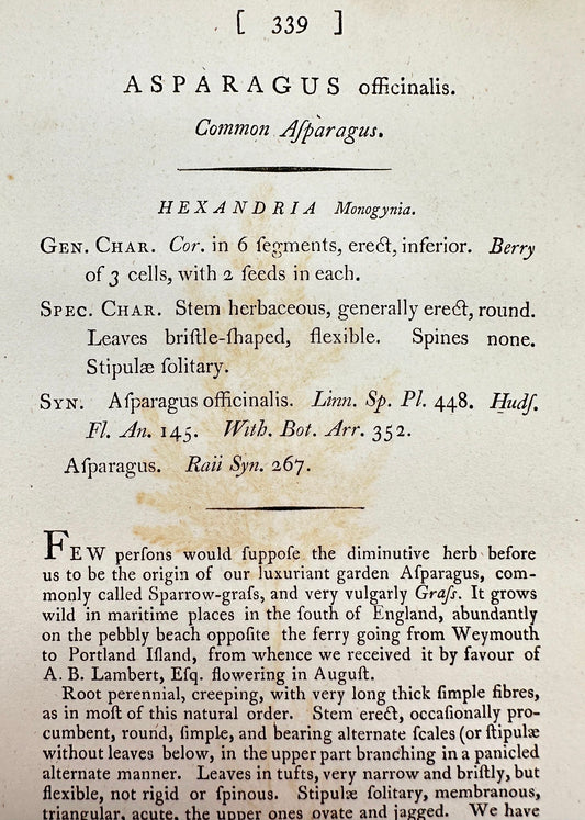 Antique Print - James Sowerby - Asparagus Officinalis - Common Asparagus - F1