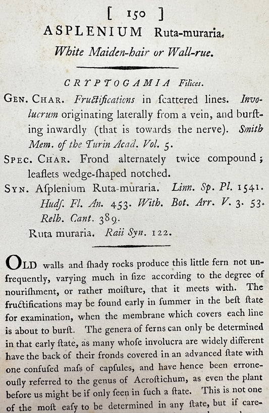 Antique Print - James Sowerby - Asplenium Ruta-muraria - White Maiden-hair - F1