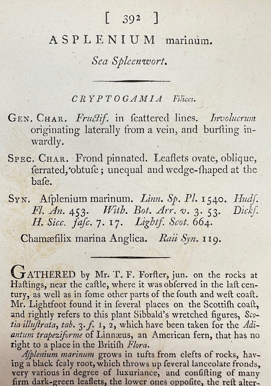 Antique Print - James Sowerby - Asplenium Marinum - Sea Spleenwort - F1