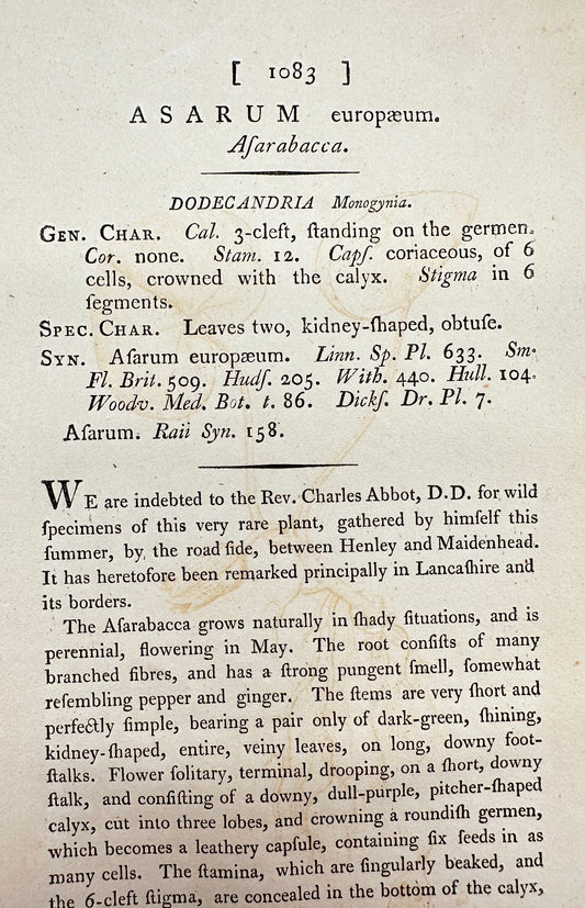 Antique Print - James Sowerby - Asarum Europaeum - European Wild Ginger - F1