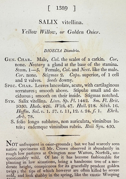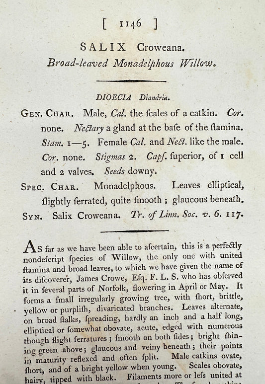 Antique Botanical Print - James Sowerby - Salix Croweana - Crowe's Willow - F1