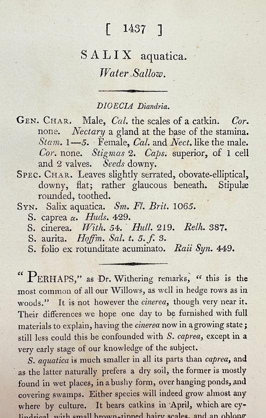 Antique Botanical Print - James Sowerby - Salix Aquatica - Water Sallow - F1
