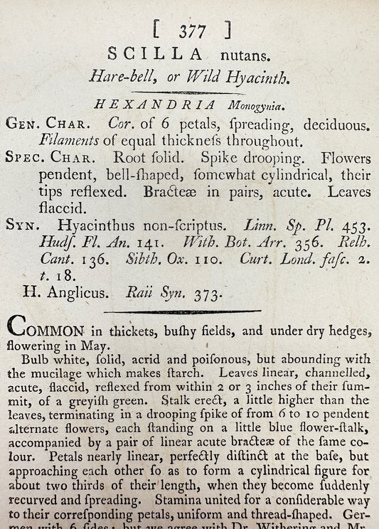 Antique Botanical Print - James Sowerby - Scilla Nutans - Hare-bell - F1