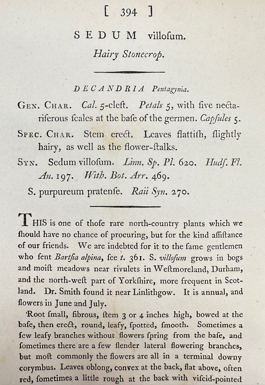 Antique Botanical Print - James Sowerby - Sedum Villofum - Hairy Stonecrop - F1