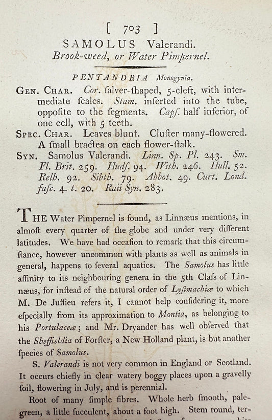 Antique Botanical Print - James Sowerby - Samolus Valerandi - Brook-Weed - F1