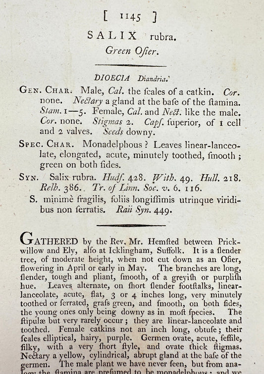 Antique Botanical Print - James Sowerby - Salix Rubra - Green Ofier - F1