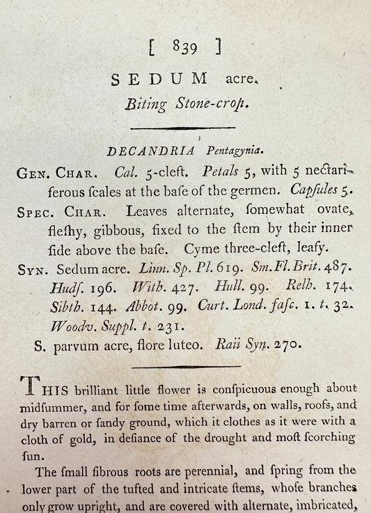 Antique Botanical Print - James Sowerby - Sedum Acre - Biting Stone-crop - F1