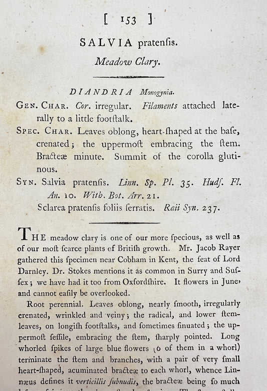 Antique Botanical Print - James Sowerby - Salvia Pratensis - Meadow Clary - F1