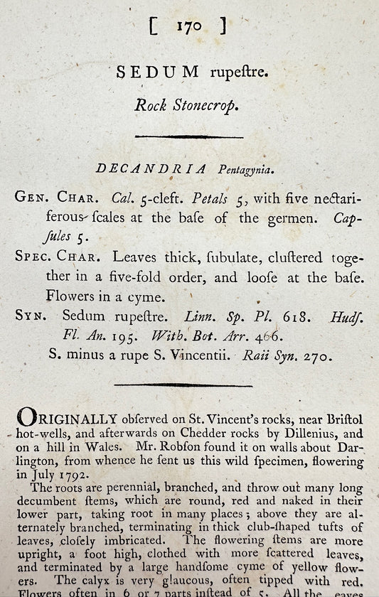 Antique Botanical Print - James Sowerby - Sedum Rupestre - Rock Stonecrop - F1