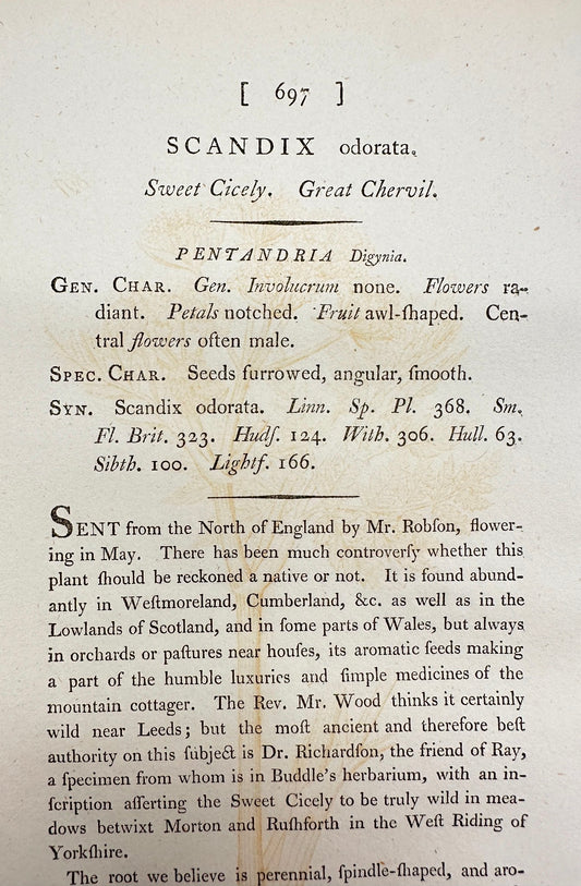 Antique Botanical Print - James Sowerby - Scandix Odorata - Sweet Cicely - F1