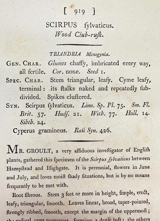 Antique Botanical Print - James Sowerby - Scirpus Fylvatic - Wood Club-rush - F1