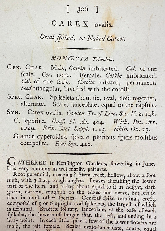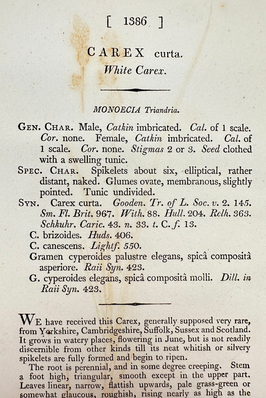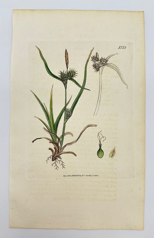 Antique Botanical Print - James Sowerby - Carex Ovalis - Naked Carex - F1