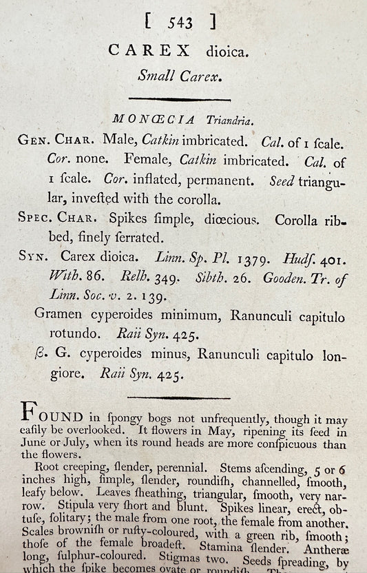 Antique Botanical Print - James Sowerby - Carex Dioica - Small Carex - F1