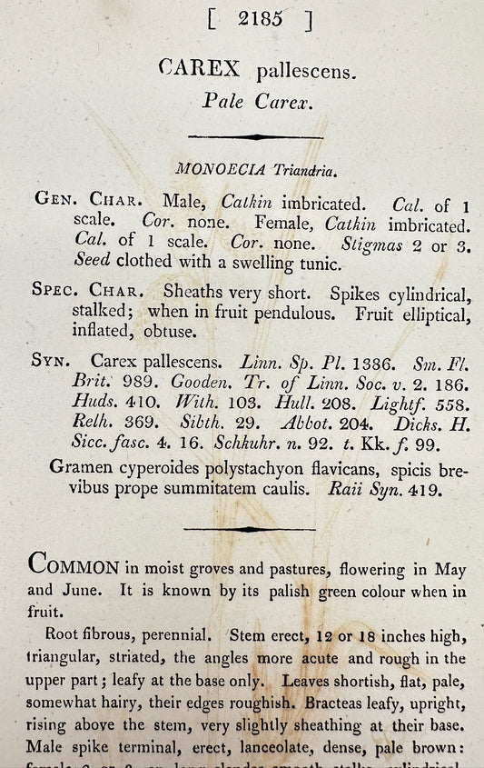 Antique Botanical Print - James Sowerby - Carex Pallescens - Pale Carex - F1