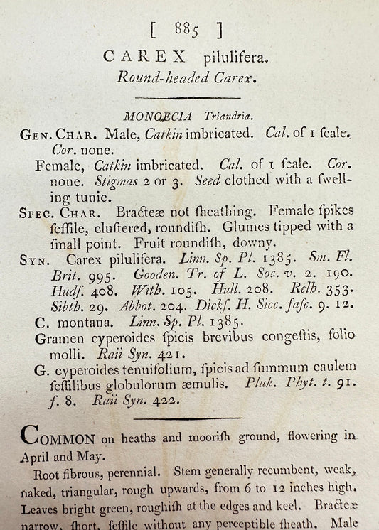 Antique Botanical Print - James Sowerby - Carex Pilulifera - Pill Sedge - F1
