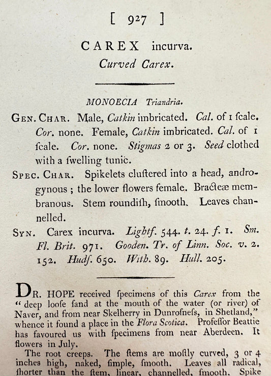 Antique Botanical Print - James Sowerby - Carex Incurva - Curved Carex - F1