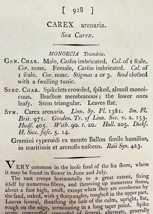 Antique Botanical Print - James Sowerby - Carex Arenaria - Sea Carex - F1