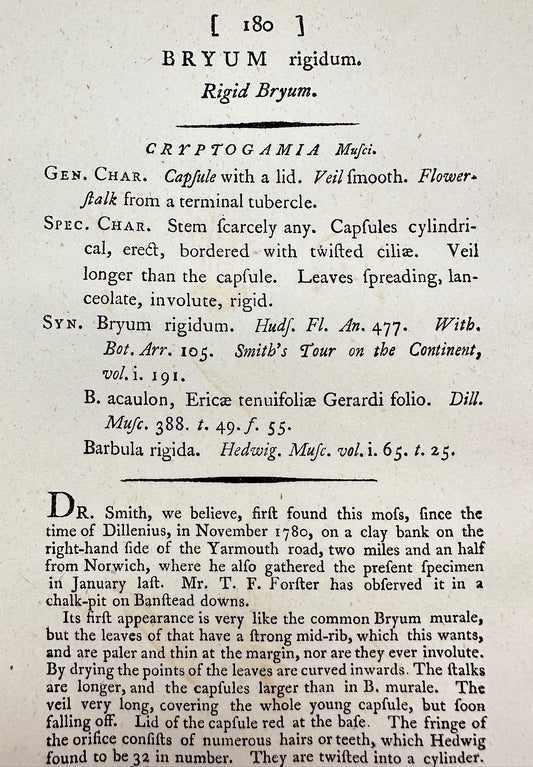 Antique Botanical Print - James Sowerby - Bryum Rigidum - Rigid Bryum - F1