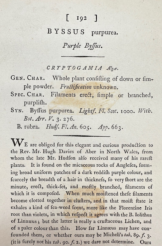 Antique Botanical Print - James Sowerby - Byssus Purpurea - Purple Byffus - F1