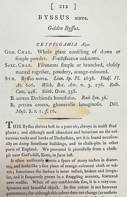 Antique Botanical Print - James Sowerby - Byssus Aurea - Golden Byffus - F1