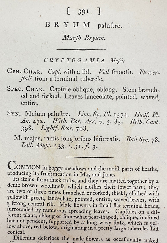 Antique Botanical Print - James Sowerby - Bryum Palustre - Marsh Bryum - F1