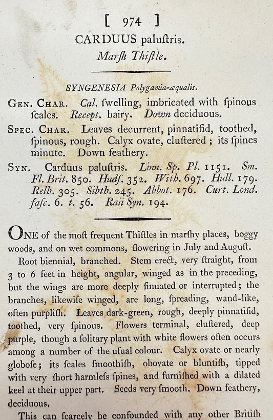 Antique Botanical Print - James Sowerby - Carduus Paluftris - Marsh Thistle - F1