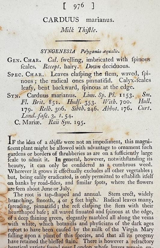 Antique Botanical Print - James Sowerby - Carduus Marianus - Milk Thistle - F1